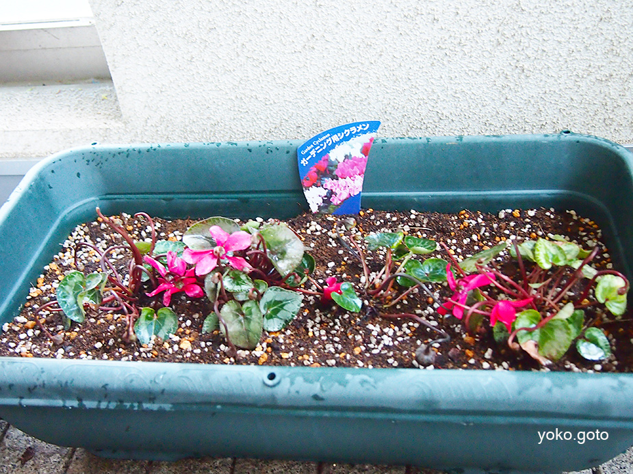 ガーデンシクラメンの経過をまとめてみました 花が終わった昨年5月中旬 単独で植えているのでこのまま葉を残した非休眠法で夏越しです (寄せ植えの場合は1鉢ずつ植え替えて夏越し) 夏越し中は水遣りとアブラムシ対策でオルトランを撒いて対策